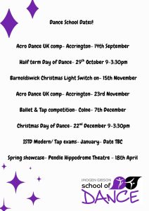 Just a reminder of dates for your diaries! We are now taking names for our two days of dance! Wednesday…